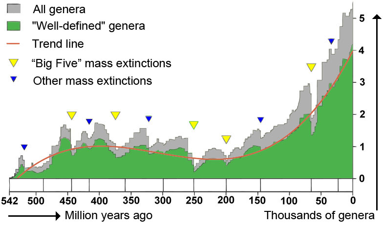 Figure 4: Phanerozoic biodiversity as shown by the fossil record. Source Wikipedia